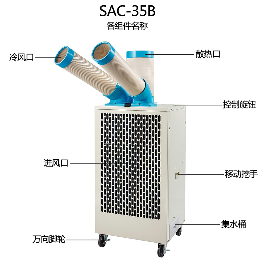 可外接3米排熱管,實現(xiàn)對小空間的整體降溫。