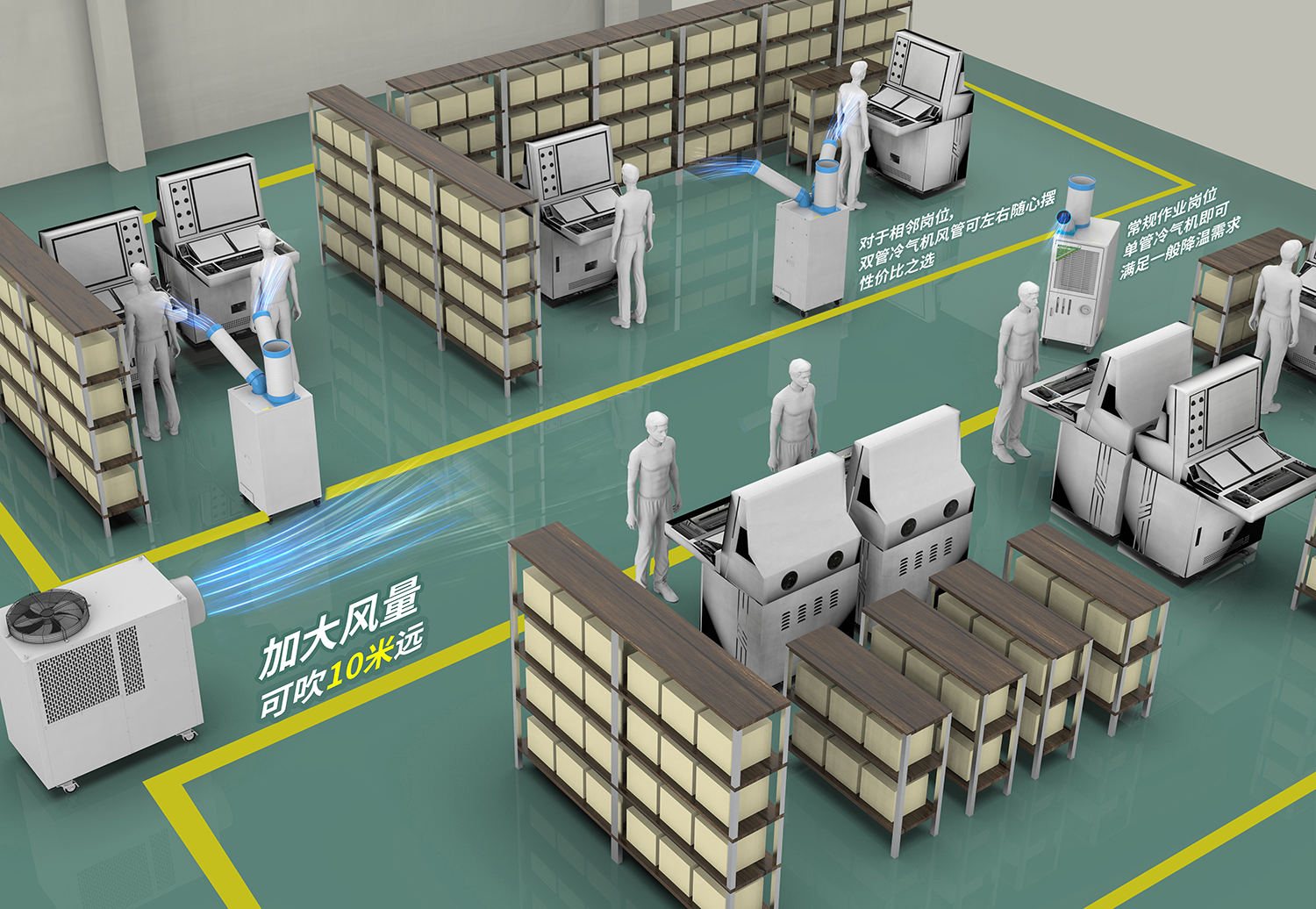 冷氣機(jī)并非常規(guī)冷水機(jī),降溫能力顯著,可降低環(huán)境溫度10-15℃