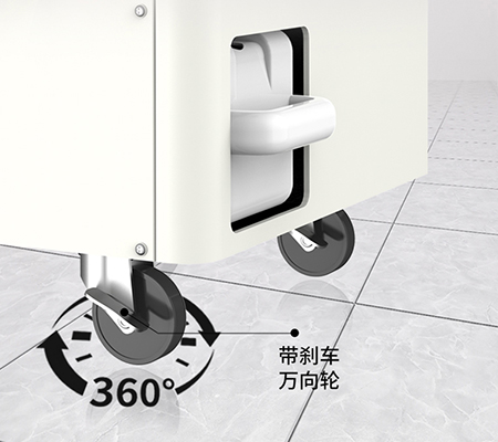 機(jī)器采用了帶有剎車的萬向輪設(shè)計,方便移動到任意空間角落進(jìn)行使用。